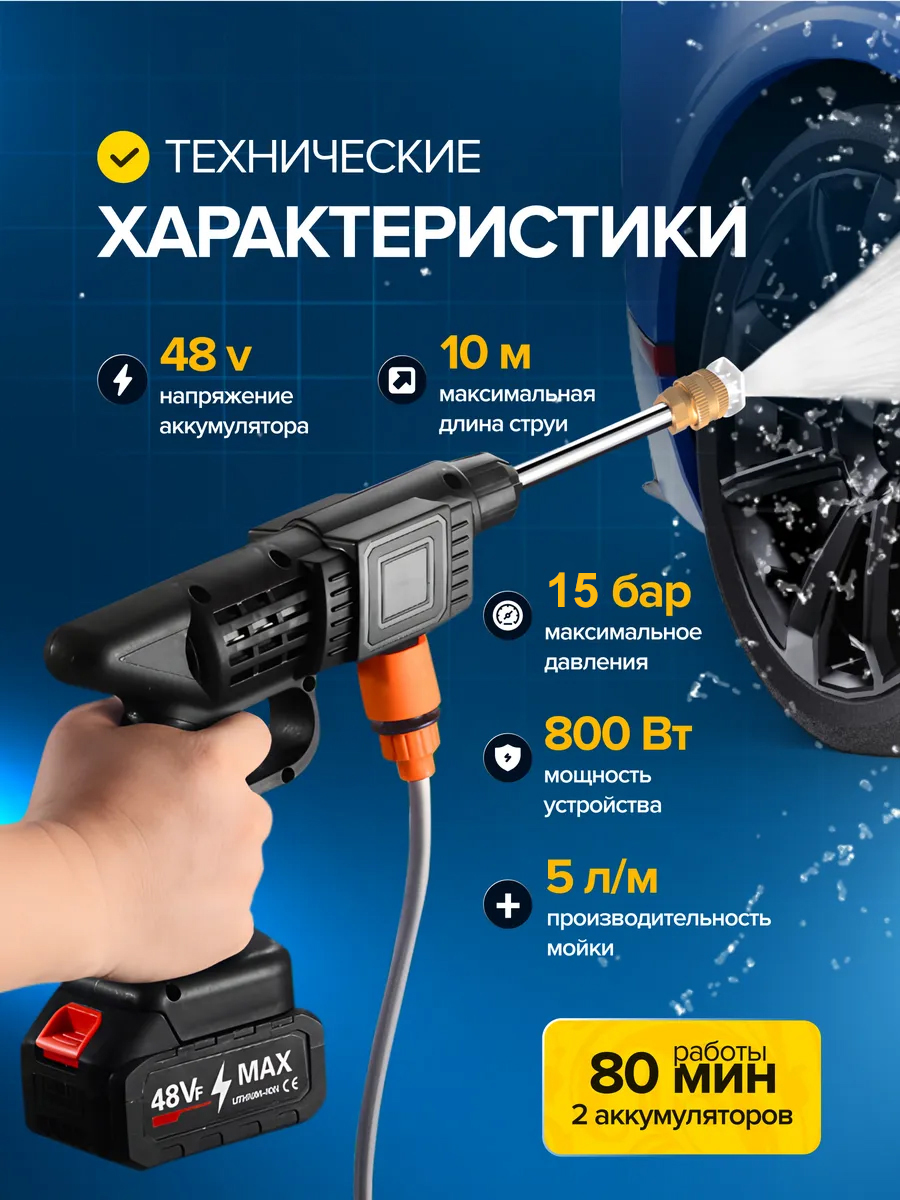 - • Тип: аккумуляторная мойка;