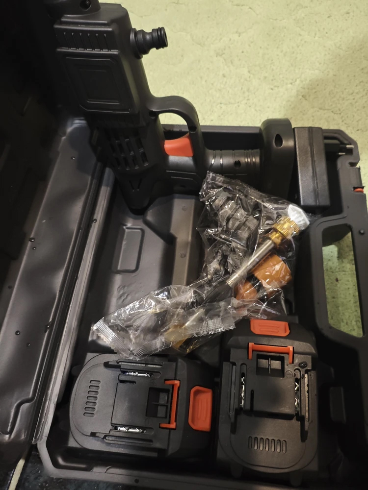 Представляем вашему вниманию идеальное решение для мойки автомобилей и не только — аккумуляторная миниавтомойка! Эта портативная электромойка обладает высокой мощностью и обеспечивает бесконтактную мойку с использованием воды под высоким давлением. Компактный и удобный инструмент идеально подходит как для мойки автомобилей, так и для ухода за садом и огородом.