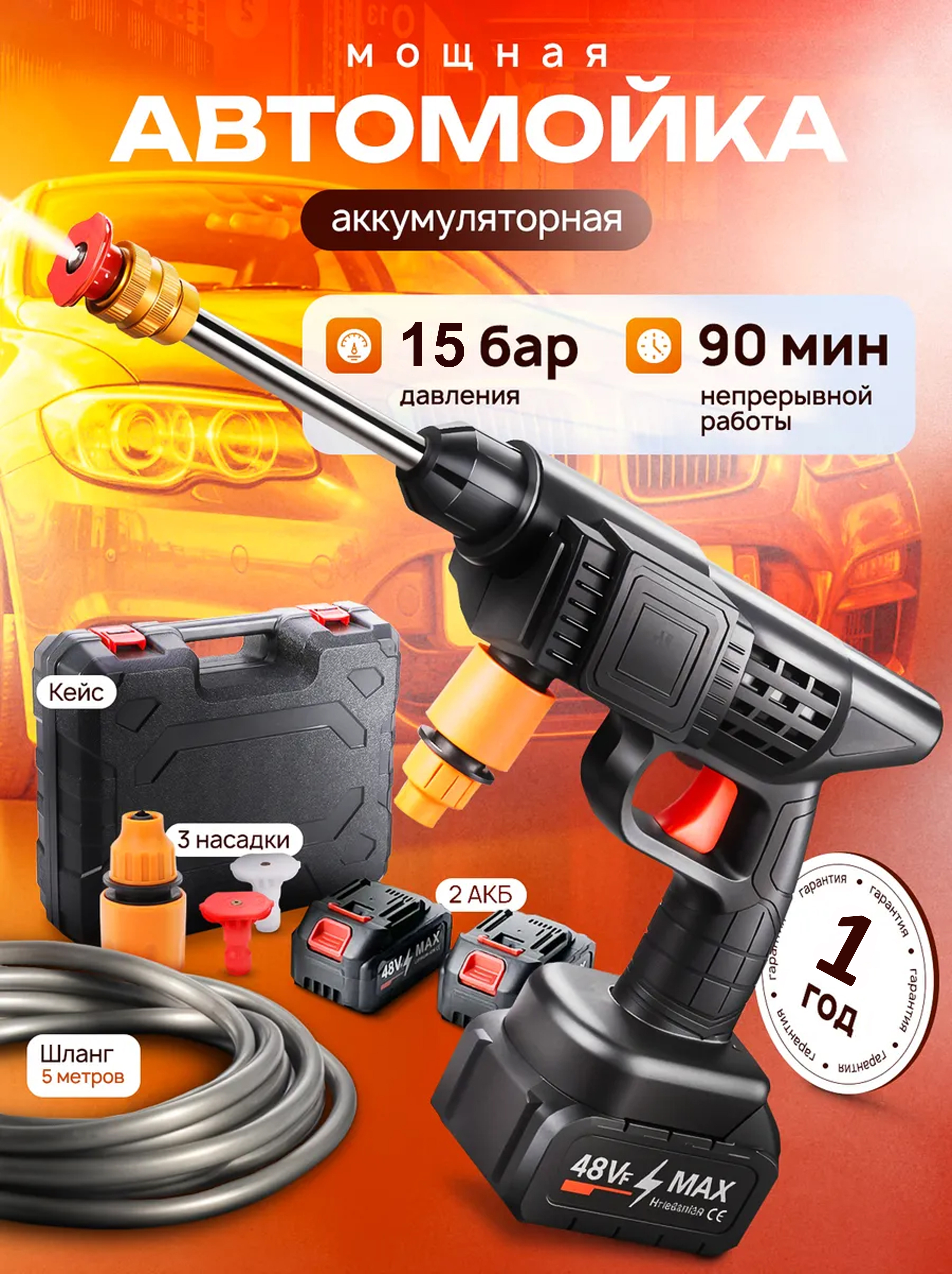- • Тип: аккумуляторная мойка;